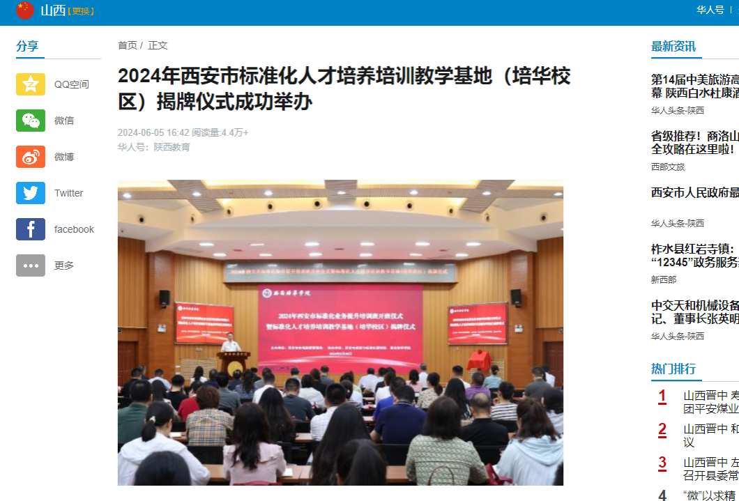 华人号:2024年西安市标准化人才培养培训教学基地(培华校区)揭牌仪式成功举办