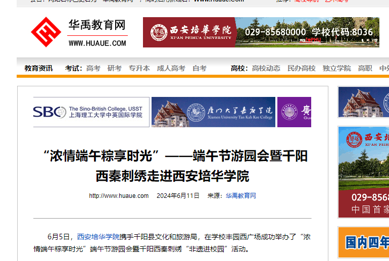 华禹教育网:“浓情端午粽享时光”——端午节游园会暨千阳西秦刺绣走进西安培华学院