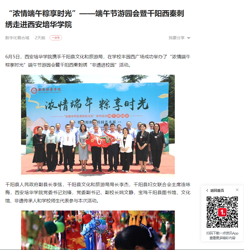 一点资讯:“浓情端午粽享时光”——端午节游园会暨千阳西秦刺绣走进西安培华学院
