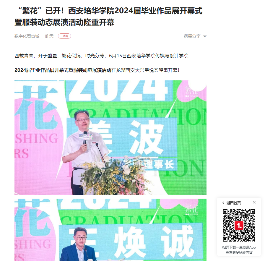 一点资讯:“繁花”已开!西安培华学院2024届毕业作品展开幕式暨服装动态展演活动隆重开幕
