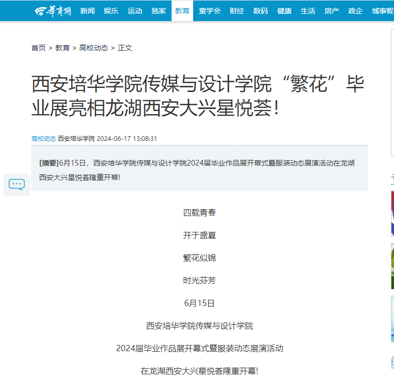 6月15日,西安培华学院传媒与设计学院2024届毕业作品展开幕式暨服装动态展演活动在龙湖西安大兴星悦荟隆重开幕!
