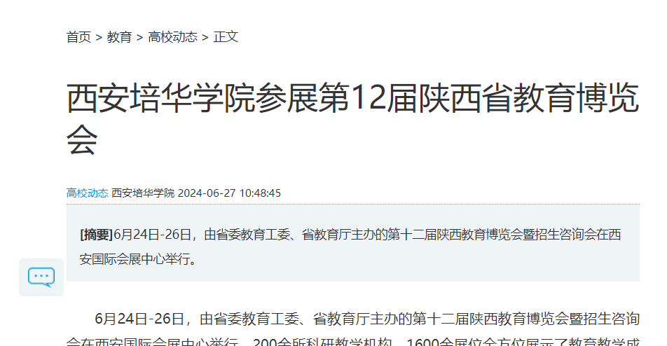 华商网:西安培华学院参展第12届陕西省教育博览会