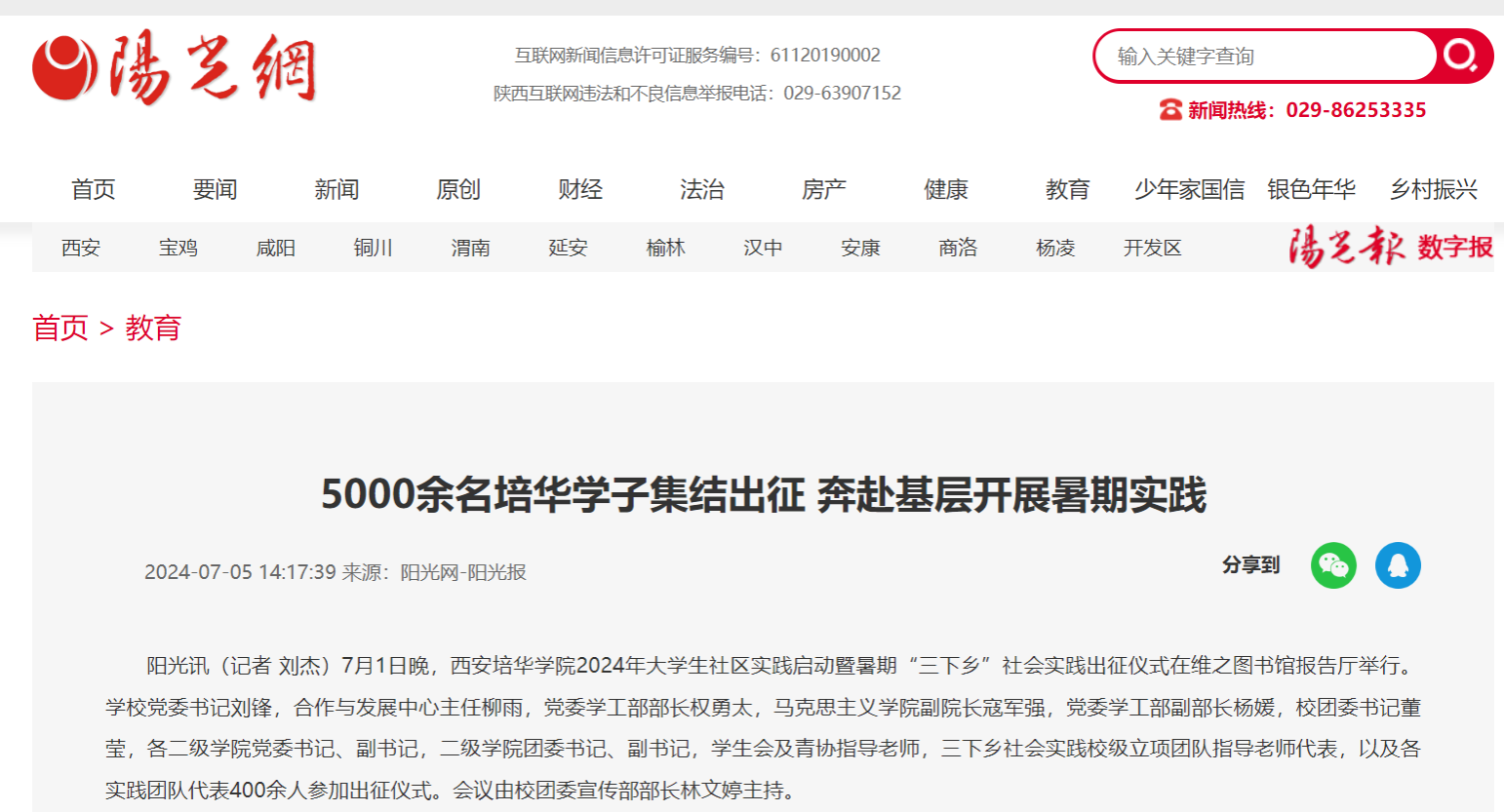 阳光网:300余支队伍、5000余名培华学子集结出征,奔赴基层开展暑期实践