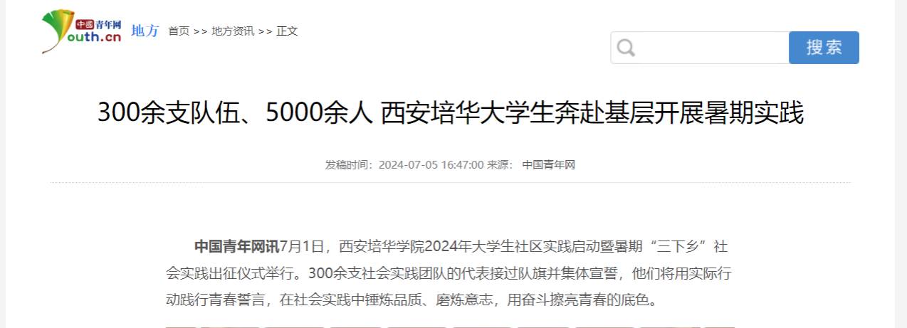 中国青年网:300余支队伍、5000余人 西安培华大学生奔赴基层开展暑期实践