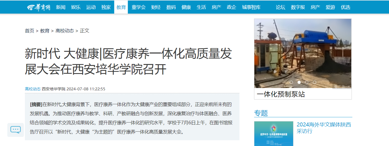 西安培华学院理事长姜波博士致辞,他首先对与会的专家、嘉宾表示热烈欢迎,同时向学校附属医院、教学医院、实习医院及参会单位多年来为医学教育教学的大力支持表示感谢。他强调指出:一是医疗康养一体化不仅仅是产业发展的趋势,更是满足人民日益增长的健康需求,我们需要坚持“以人为本”的发展理念,以科技为引领,以政策为支撑,以市场需求为导向,推动医疗康养产业向更高质量、更深层次的融合与发展;二是热切的邀请各位专家、兄弟院校、医疗机构和科研院所共同支持并参与培华在健康事业和健康产业方面的建设,为康养产业的发展贡献力量;三是我校正在积极推动与兄弟院校、医疗机构的深度合作,特别是深化与附属医院的紧密合作,旨在构建一个整合培华医校资源的全方位人才培养平台,推进医学领域的产业学院建设。
