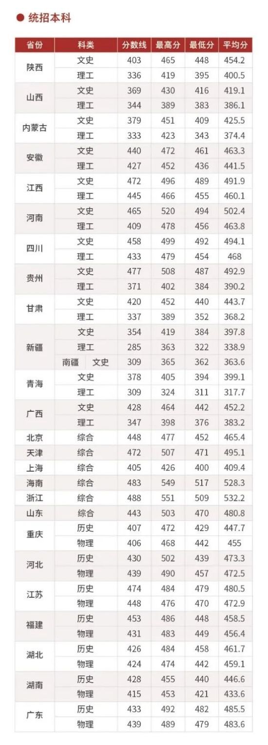 学校录取分数线如下
