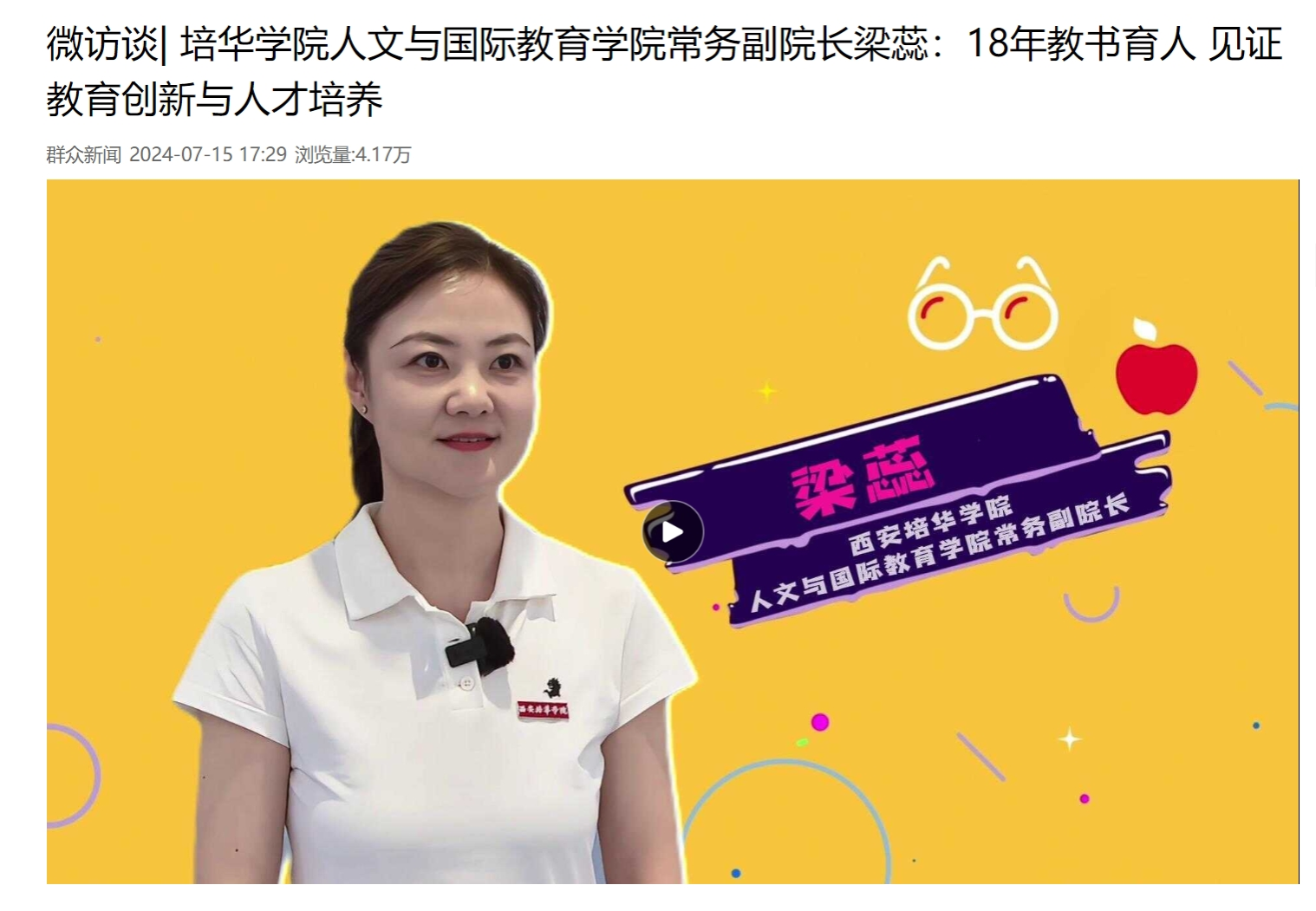 群众新闻网:微访谈| 培华学院人文与国际教育学院常务副院长梁蕊:18年教书育人 见证教育创新与人才培养