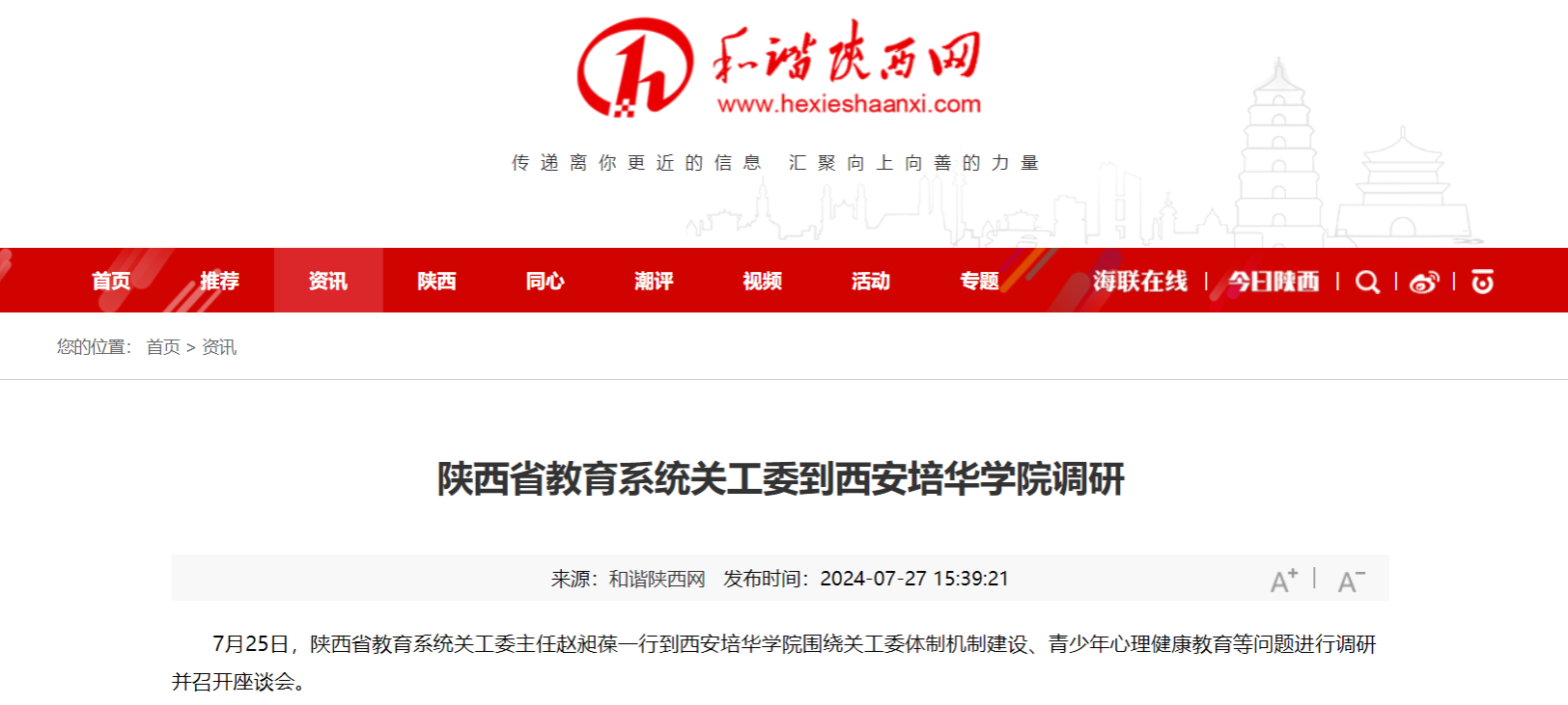 和谐陕西网:陕西省教育系统关工委到西安培华学院调研