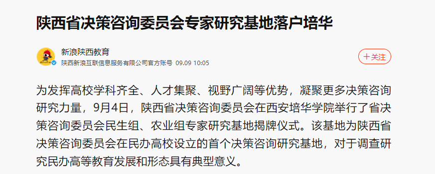 新浪陕西教育:陕西省决策咨询委员会专家研究基地落户西安培华学院