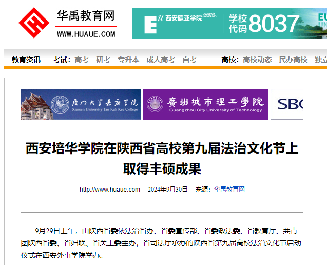 9月29日上午,由陕西省委依法治省办、省委宣传部、省委政法委、省教育厅、共青团陕西省委、省妇联、省关工委主办,省司法厅承办的陕西省第九届高校法治文化节启动仪式在西安外事学院举办。