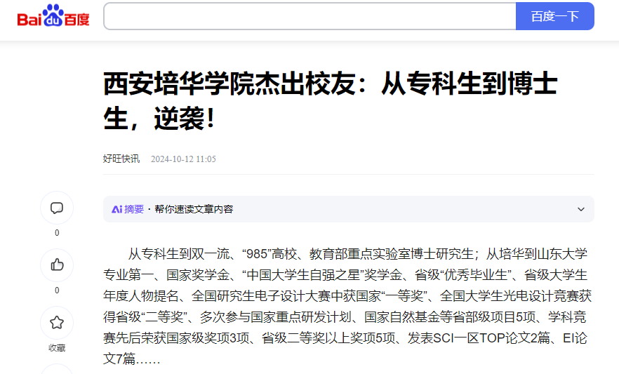 从专科生到双一流、“985”高校、教育部重点实验室博士研究生;从培华到山东大学专业第一、国家奖学金、“中国大学生自强之星”奖学金、省级“优秀毕业生”、省级大学生年度人物提名、全国研究生电子设计大赛中获国家“一等奖”、全国大学生光电设计竞赛获得省级“二等奖”、多次参与国家重点研发计划、国家自然基金等省部级项目5项、学科竞赛先后荣获国家级奖项3项、省级二等奖以上奖项5项、发表SCI一区TOP论文2篇、EI论文7篇……