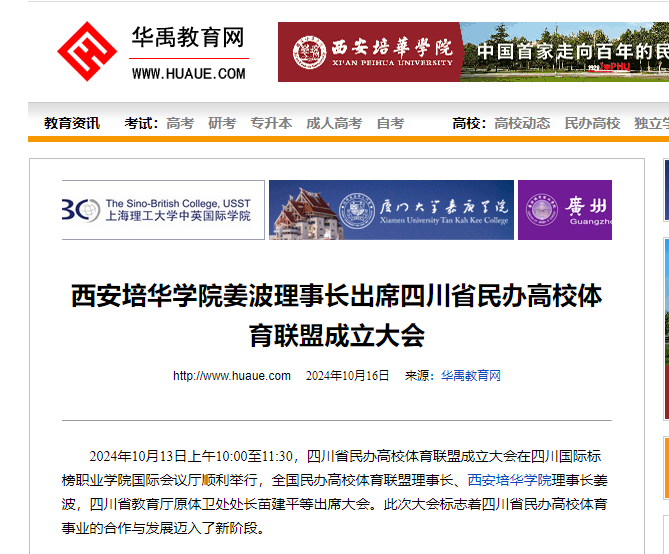 四川省民办高校体育联盟成立大会在四川国际标榜职业学院国际会议厅顺利举行,全国民办高校体育联盟理事长、西安培华学院理事长姜波,四川省教育厅原体卫处处长苗建平等出席大会。此次大会标志着四川省民办高校体育事业的合作与发展迈入了新阶段。