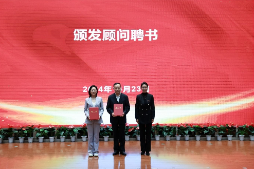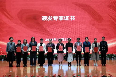 西安培华学院学术委员会主席、副校长刘越莲及党委副书记、副校长、妇联主席姚文静为基地聘请的两位顾问和十位专家颁发聘书。