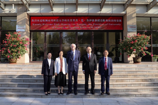 10月16日,德国欧洲应用科技大学校长莫里茨·范·鲁伊恩来西安培华学院交流访问。西安培华学院理事长姜波博士、副校长刘越莲教授、国际校长李华教授、国际交流中心主任王鹏与来宾座谈交流,并举行签约仪式。