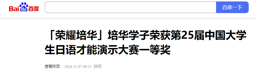 11月2日,第25届中国大学生日语才能演示大赛在西安外国语大学长安校区举行。学校人文与国际教育学院外语系日语专业2022级王静怡同学获得一等奖,并获得受邀访问日本的机会,小泽一博老师获优秀指导奖。学校获最优秀院校奖。