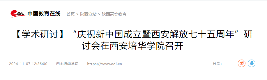 为庆祝中华人民共和国成立七十五周年,贯彻党的二十大精神,讲好陕西红色故事,纪念缅怀西安解放中地方党组织及统战人士做出的杰出贡献,推动新时期统一战线工作为实现中国式现代化凝聚力量、发挥巨大作用,2024年11月2日,“庆祝新中国成立暨西安解放七十五周年”纪念研讨会在西安培华学院明德楼召开。多位党史专家、学者,为西安解放作出突出贡献的老一辈革命者的亲属等人士齐聚一堂,纪念、缅怀西安解放中地方党组织及统战人士做出的杰出贡献。