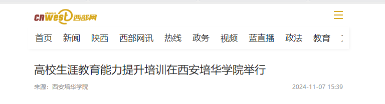 2024年11月2日到4日,为期三天的高校生涯教育能力提升培训在陕西西安圆满结束。此次培训吸引了四十多位来自全国各地的高校生涯教育工作者参与,通过专家讲座、经验分享、实地考察等多种形式,为参训教师提供一个全面学习、交流互动的平台,提升参训教师在大学生职业生涯教育方面的专业素养和实践能力。