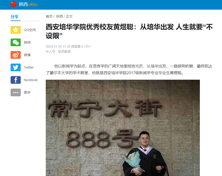 他以新闻学为起点,在语言学的广阔天地里绽放光芒,从培华出发,一路披荆斩棘,最终抵达了墨尔本大学的学术殿堂,他就是西安培华学院2017级新闻学专业毕业生黄煜聪。