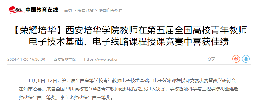 本次大赛旨在提升青年教师电子技术基础与电子线路课程的教学水平,推动课程体系的改革与创新,进一步激发教师投入课程建设和教学研究的热情。开赛以来,学校高度重视备赛工作,积极组织专家围绕参赛内容进行研讨打磨,参赛教师认真备赛、团结协作、相互借鉴,不断完善授课作品,最终凭借扎实的教学基本功、先进的教育理念和创新的教学方法,获得大赛评委的一致好评,荣获全国二等奖、三等奖。