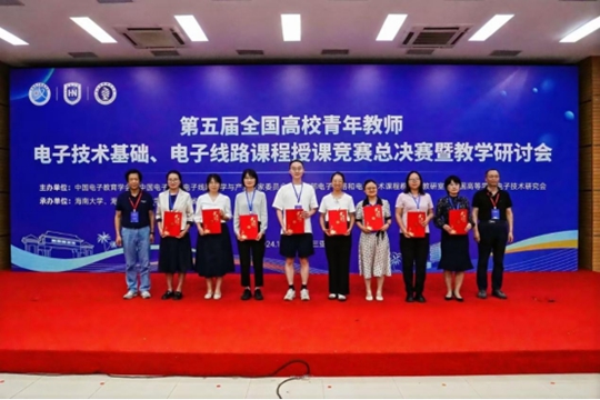 11月8日-12日,第五届全国高等学校青年教师电子技术基础、电子线路课程授课竞赛决赛暨教学研讨会在海南落幕。来自全国78所高校的104名青年教师经过初赛选拔进入决赛,西安培华学院智能科学与工程学院胡亚维老师获得全国二等奖、李宇老师获得全国三等奖。