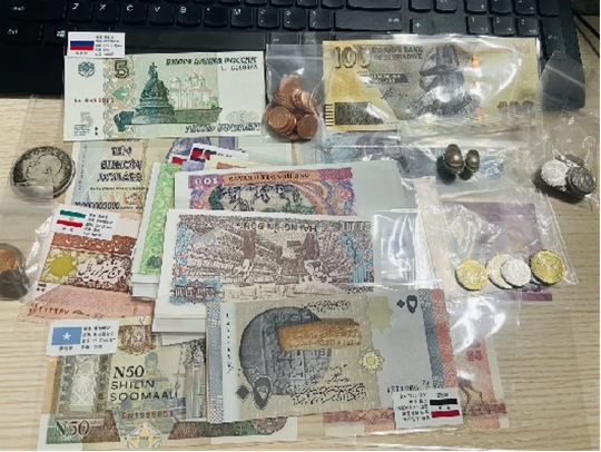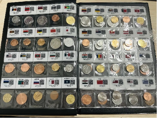 涂老师收藏了大量其他国家的货币,用于课堂教学