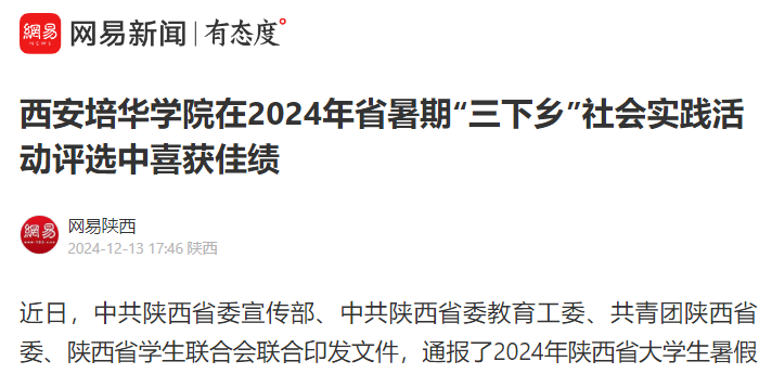 近日,中共陕西省委宣传部、中共陕西省委教育工委、共青团陕西省委、陕西省学生联合会联合印发文件,通报了2024年陕西省大学生暑假文化科技卫生“三下乡”社会实践活动结果,西安培华学院凭借卓越的组织能力荣获多项省级荣誉。