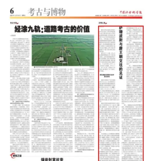 12月13日,学校科研管理中心副主任朱利民的历史考古理论文章《萨珊波斯与唐王朝交往的见证》在《中国社会科学报》第3035期A06版“考古与博物”专版通栏发表(文章系国家社科基金项目“唐代胡人都市生活研究”21XKG004阶段性成果)。这是培华历史考古成果首次在该权威学术报刊亮相。
