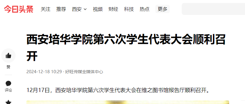 12月17日,西安培华学院第六次学生代表大会在维之图书馆报告厅顺利召开。