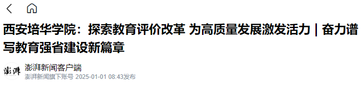 2024年以来,西安培华学院进一步明晰教育强国建设中民办高校的使命担当,持续贯彻落实《深化新时代教育评价改革总体方案》,夯实教育教学质量保障体系建设,从教师评价、学生评价、专业评价、数字赋能等方面入手,积极推进教育评价改革,为学校高质量发展注入新活力。