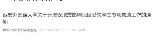 近期多地地震灾害频发,学校密切关注灾情发展变化,时刻牵挂着相关地区学生的家庭受灾情况。如有因地震等突发灾害造成个人或家庭经济损失困难的,学校持续开放地震灾害专项临时困难补助通道,同学们可根据需要及时申请。