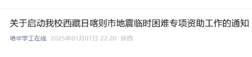 1.全面摸排。各学院要主动关心慰问西藏日喀则市定日县和其相邻县(市、区)的学生,对学生家庭受灾情况进行摸排,确保实时掌握学生情况。