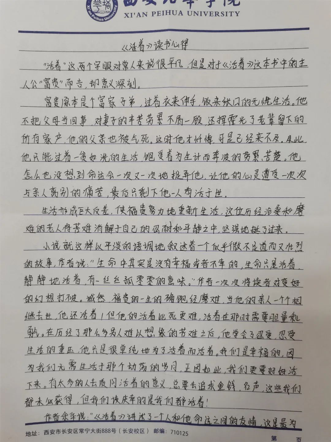 为深入传承中华优秀传统文化,提升自我修养,推进“书香培华”品牌特色的校园文化建设,教育引导学生从中华优秀传统文化中汲取营养和奋进动力。前不久,西安培华学院会计与金融学院党委在各学生支部成员内广泛开展“阅读经典、书香培华”主题读书分享会活动,以达到营造积极向上、健康文明的校园文化氛围。此次“阅读经典、书香培华”读书分享会设立一等奖、二等奖、三等奖及优秀奖,活动形式主要通过写读书笔记或读书心得来分享自己的阅读感受。各学生支部积极参与,踊跃报名,收到了丰富多彩,形式多样的读书笔记,本次活动最终评选出一等奖1名、二等奖3名、三等奖5名、优秀奖10名,选取了部分佳作向大家展示,让我们一起来看看吧!