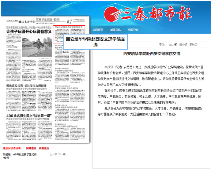 本报讯(记者 农思思)为进一步推进学校现代产业学院建设,探索现代产业学院体制机制创新,近日,西安培华学院教务管理中心主任铁卫率队前往西安文理学院数字产业学院进行交流调研,教务管理中心、各学院分管领导及专业带头人等30余人参与了本次交流调研活动。