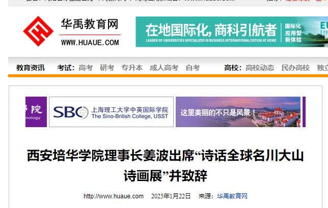 西安培华学院理事长、西安艺术教育学会会长姜波作为诗画展指导单位致辞