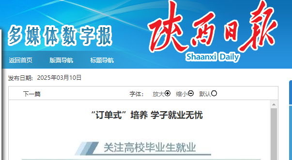 近年来,陕西高校紧密结合地方经济和社会发展需求,以就业为导向,建立产学研结合的长效机制,积极推行“订单式”培养模式,全力推进毕业生充分高质量就业。