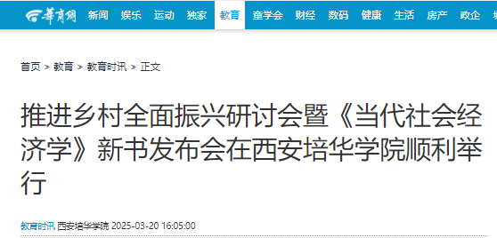 为深入贯彻落实党的二十大及二十届三中全会精神,全面落实2025年中央一号文件部署要求,全面推进乡村振兴战略,凝聚智力资源,发挥高校优势,助力陕西省县域经济高质量发展,3月19日下午,由陕西省经济学学会乡村建设研究会、西安培华学院主办,中共陕西省委党校、西北大学出版社协办,西安培华学院乡村振兴研究院承办的“推进乡村全面振兴研讨会暨《当代社会经济学》新书发布会”在明德楼报告厅举行。省内专家学者、政府代表、企事业单位代表、培华师生200余人齐聚一堂,共商乡村振兴发展大计。