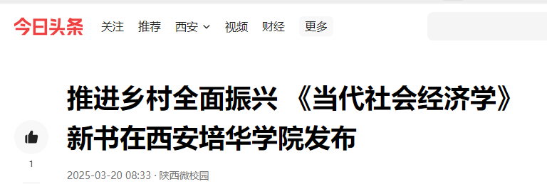 今日头条:推进乡村全面振兴 《当代社会经济学》新书在西安培华学院发布