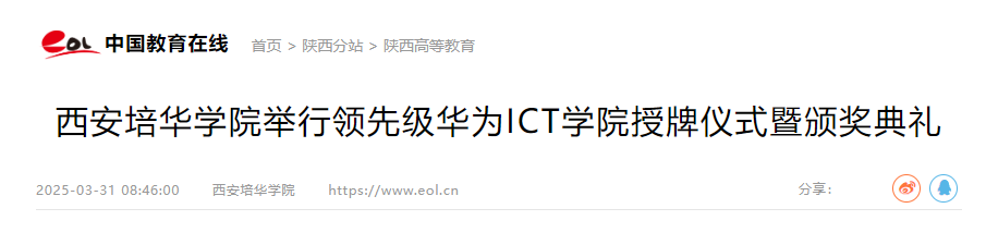 授牌仪式上,华为技术有限公司将领先级华为ICT学院牌匾授予西安培华学院,标志着西安培华学院华为ICT学院建设跃上新台阶。