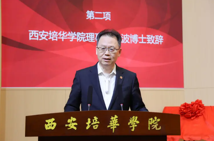 理事长姜波致辞,他表示,晋级领先级华为ICT学院是对培华过往工作的肯定,学校将充分利用华为及合作企业的技术资源和行业经验,为学生搭建更加广阔的学习与实践平台,让学生在真实的项目环境中锻炼自己,提升自己的实践能力和创新能力。