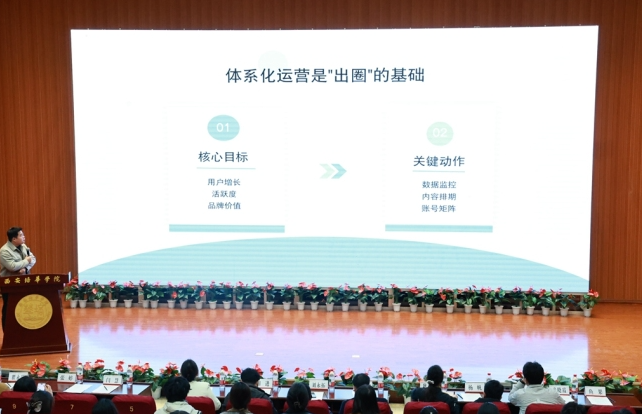 活动中,华商网记者祁鹏玉以《新媒体报道如何破壁出圈》为主题,从新媒体的日常运营与管理、新媒体运营方案策划及文案创作、融媒产品创新路径、社交平台终端出圈策略等角度,结合自身经验,为校园媒体人们带来宝贵的经验分享。