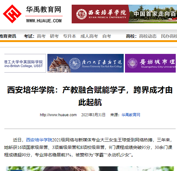 西安培华学院2021级网络与新媒体专业大三女生王琼被多家媒体关注报道