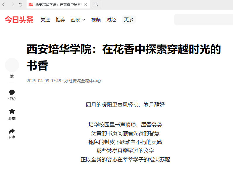 今日头条:西安培华学院:在花香中探索穿越时光的书香