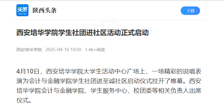4月10日,西安培华学院大学生活动中心广场气氛热烈,一场精彩的说唱表演为会计与金融学院学生社团进至诚社区启动仪式拉开了帷幕。会计与金融学院、学生服务中心、校团委等相关负责人出席仪式。