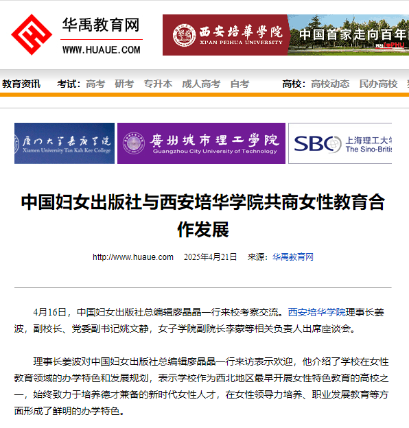会谈为双方建立长期战略合作关系奠定了基础,中国妇女出版社与西安培华学院将建立常态化合作机制,充分发挥各自在理论研究、实践探索、出版传播等方面的优势,共同打造女性教育创新发展的示范平台,为培养担当民族复兴大任的时代新女性作出更大贡献。中国妇女出版社作为全国妇联主管的国家级出版社,在女性读物出版、家庭教育研究等领域具有独特优势,期待与培华学院开展全方位合作,共同推动女性教育事业创新发展。