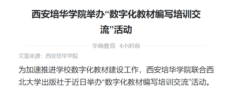 西安培华学院将持续深化与西北大学出版社等优质出版机构的合作,通过政策保障、资金支持等措施,为一线教师、尤其是一线教材编写组老师提供更加优质的服务资源,强化校社共建,促进教材建设水平的提升。
