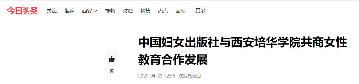 今日头条:中国妇女出版社与西安培华学院共商女性教育合作发展