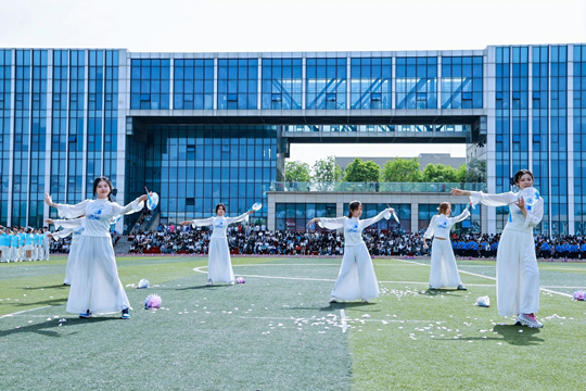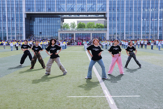 教职工方队化身粉色浪潮,144双手共绘樱花海,老师们秒变追风舞者,团队协作默契满分,欢笑与汗水交织成最萌年龄差表演。