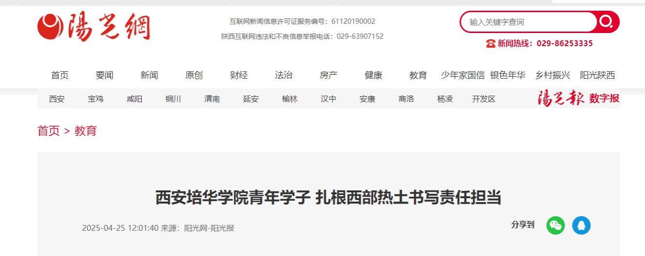 西安培华学院于在风起云涌的大革命时代诞生,在抗战烽火中升华,在共和国旗帜下成长,在改革开放浪潮中奋进,在新时代逐梦中图强。一代代培华人用救国之心、爱国之举、报国之情、兴国之梦、强国之志创建了培华昨天的辉煌,描绘了培华明天的希望。历史的接力棒又交到新一代培华人手上。迈步在中华民族伟大复兴征程上的培华青年用行动证明:选择基层不是选择平凡,而是选择成为时代的脊梁;扎根西部不是单向奉献,而是在广阔天地中实现人生价值的升华。这种双向奔赴,正是新时代青年最动人的姿态。