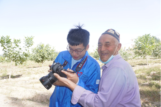 福建籍培华学子肖泽鸿为新疆群众拍摄照片