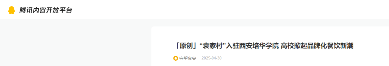 腾讯新闻:「原创」“袁家村”入驻西安培华学院 高校掀起品牌化餐饮新潮